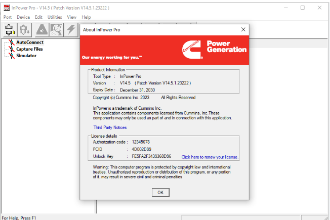 InPower is a Windows-based service and diagnostic tool. This tool provides electronic service functions including; adjustments for trims and settings, monitoring, strip chart, data logging, viewing faults, and report capability.